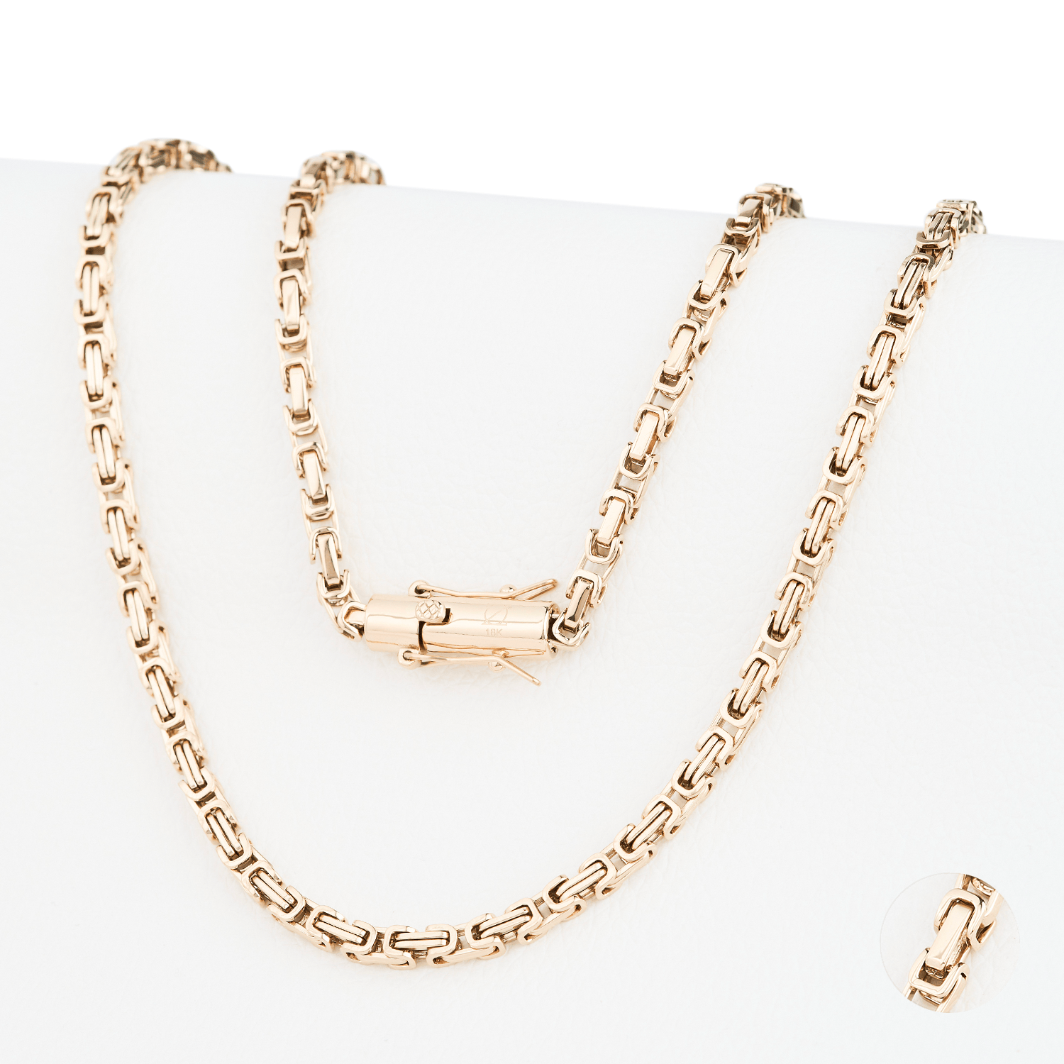 -Medidas, Largo 45cm y 65 cms -Grosor 6mm -La Cadena posee broche tipo Tubo -Broches Contramarcados 18k -Tejidos Italianos ceñidos al cuerpo -Nunca Pierde el Color -Joyas hipoalergénicas -Soporta agua de Mar, Piscinas, Lociones, etc. -Terminaciones de Lujo -Diseños exclusivos de Europa -Joyas totalmente solidas (no huecas) -Todas nuestras joyas son Certificadas y Garantizadas